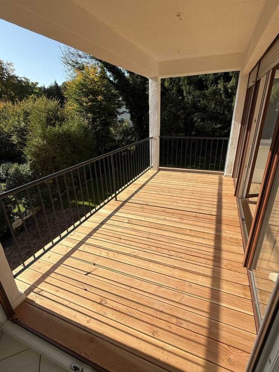 Beim Betreten der Wohnung empfängt Sie ein großzügiger, offener Flur, von dem aus alle Räume bequem erreichbar sind. Die Wohnung verfügt über eine geräumige Küche und ein großes Wohnzimmer mit bodentiefen Fensterfronten. Aus beiden Zimmern ist der rund 10 m² große Balkon begehbar, der kürzlich komplett erneuert wurde. Er lädt zu gemütlichen Abenden oder entspannten Stunden im Freien ein.