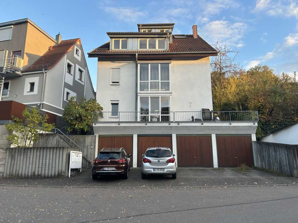 Zur Wohnung gehören außerdem ein separater Kellerraum sowie eine eigene Garage. Vor der Garage befindet sich zusätzlich ein Stellplatz, auf dem ein weiteres Fahrzeug abgestellt werden kann.