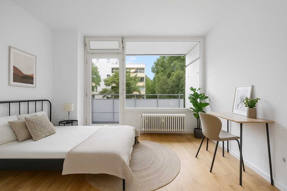 Das Zimmer ist gemütlich, hell und modern eingerichtet und befindet sich in einer 3er WG. Es gibt ein bequemes Bett, einen großen Kleiderschrank und einen Schreibtisch – also alles, was man zum Wohnen und Arbeiten braucht. Der Raum bietet genug Platz, um sich wohlzufühlen und auch mal abzuschalten.