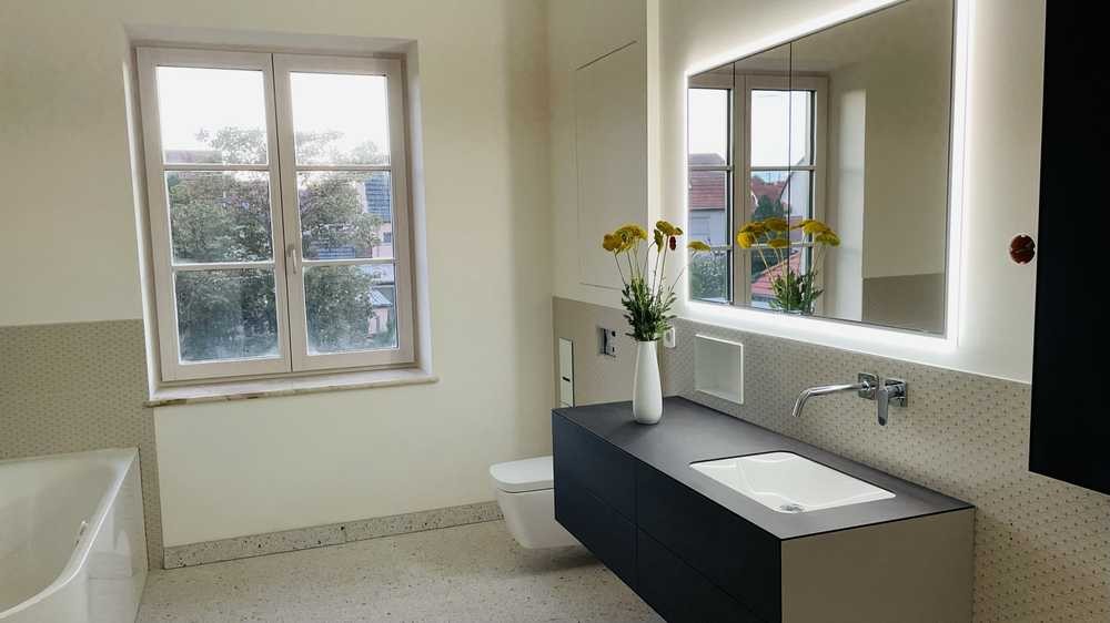 Das 1912 im schlichten Jugendstil und mit Elementen der aufkommenden Moderne erbaute Wohnhaus wurde nach über 100 Jahren und zwei Weltkriegen nun erstmals grundlegend saniert. Unter Achtung des Denkmalschutzes wurden wesentliche gestalterische Elemente behutsam erhalten und wieder aufgenommen. Ein Schwerpunkt war die nachhaltige energetische Ertüchtigung mit u.a. dreifach verglasten Schallschutzfenstern und Fußbodenheizung mit Erdwärmepumpe. Auf die Verwendung nachhaltiger, nicht brennbarer und allergiefreundlicher Baustoffe wurde besonderer Wert gelegt. So ist ein Standard erreicht worden, wie ihn heute viele Neubauten nicht aufweisen – bereit für die nächsten 100 Jahre.