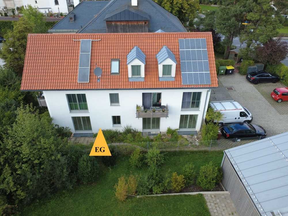 Auf dem Grundstück findet ein Ensemble Platz bestehend aus einem denkmalgeschützten Altbau, einem im Jahr 2000 errichteten erdgeschossigen Mittelbau und einem gleichzeitig errichteten 3 geschossigen Anbau. Darin befindet sich die zu vermietende Wohnung im Erdgeschoss auf der straßenabgewandten Süd- und Westseite.