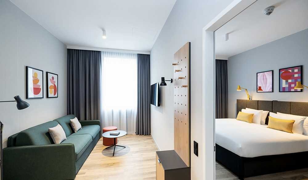 Unsere Unterkunft liegt direkt neben dem Flughafen und dem Gateway Gardens Business Village – nur 14 Minuten mit dem Zug ins Frankfurter Stadtzentrum.