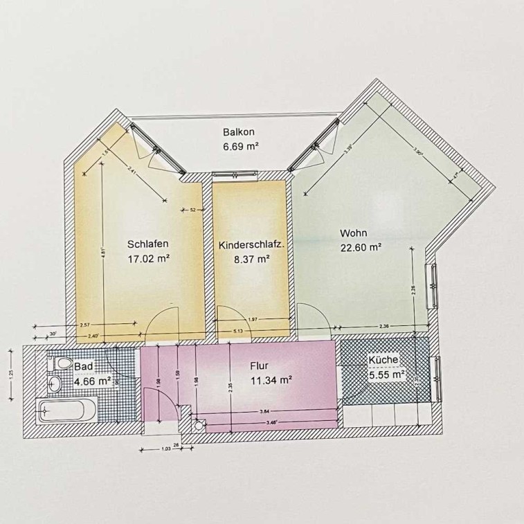 Sanierte Wohnung mit drei Zimmern und Balkon in Stadtbergen
