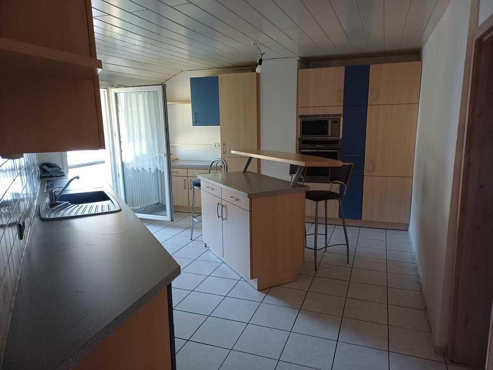 Die Einbauküche ist hochwertig und bietet viel Platz. Der angrenzende Wohnbereich eignet sich als zusätzliches Zimmer, Gemeinschaftsraum oder Homeoffice. Insgesamt gibt es vier Zimmer, zwei überdachte Balkone, ein helles Bad mit Wanne und Waschmaschinenanschluss, sowie einen ausgebauten Dachboden mit ca. 17 m² zusätzlicher Nutzfläche – perfekt als Büro, Hobbyraum oder Stauraum.