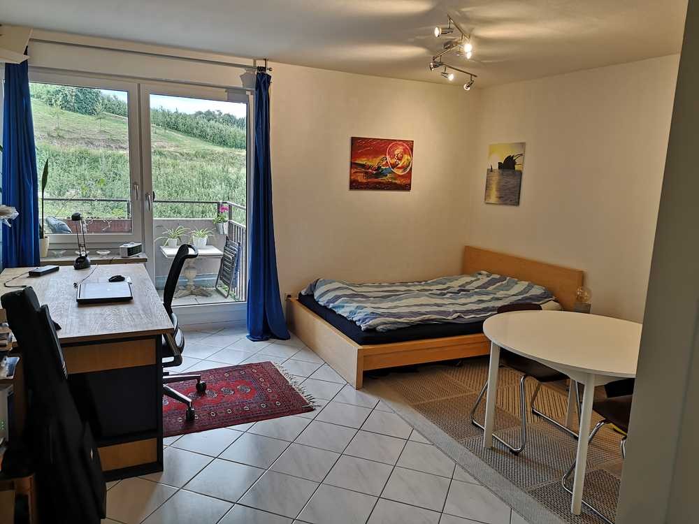 Angeboten wird eine helle und ruhige 1,5 Zimmer Wohnung im 2. Stockwerk in Friedrichshafen-Berg. Die Wohnung hat einen kleinen Vorraum und einen großen Hauptraum mit einem Balkon, von dem man ins Grüne blickt. Ebenfalls verfügt die Wohnung über eine abgetrennte Einbauküche und ein neu saniertes Bad mit Badewanne. Im Haus befindet sich ein Fahrradkeller und ein Waschraum mit Waschmaschine zur allgemeinen Benutzung. Außerdem ist im Haus ein Aufzug vorhanden, der jedoch ein teilweises Treppensteigen nicht verhindert. Vor dem Haus stehen ausreichend Stellplätze zur Verfügung.