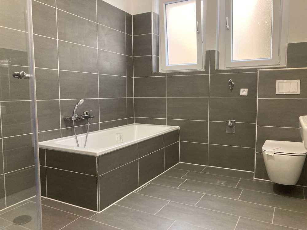 Im Zuge der Arbeiten wird der Grundriss verändert, so dass ein Tageslichtbad mit Badewanne, Waschmaschinenanschluss und Dusche entsteht.