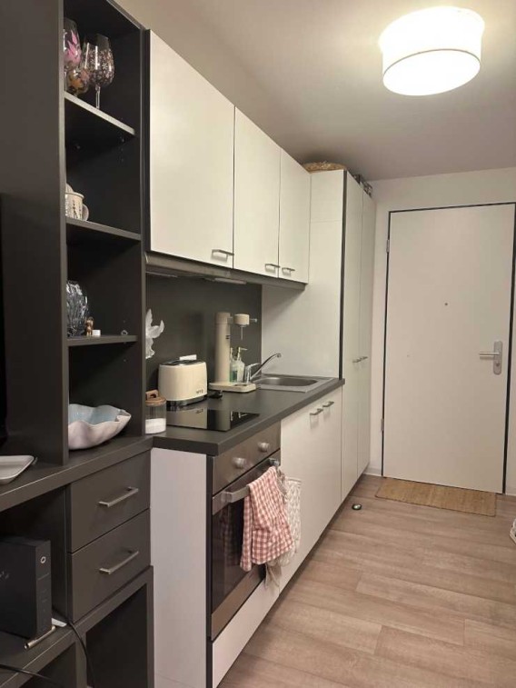 Das vollmöblierte Apartment befindet sich im ersten Stock des Studentenwohnheims iLive in Biberach.
