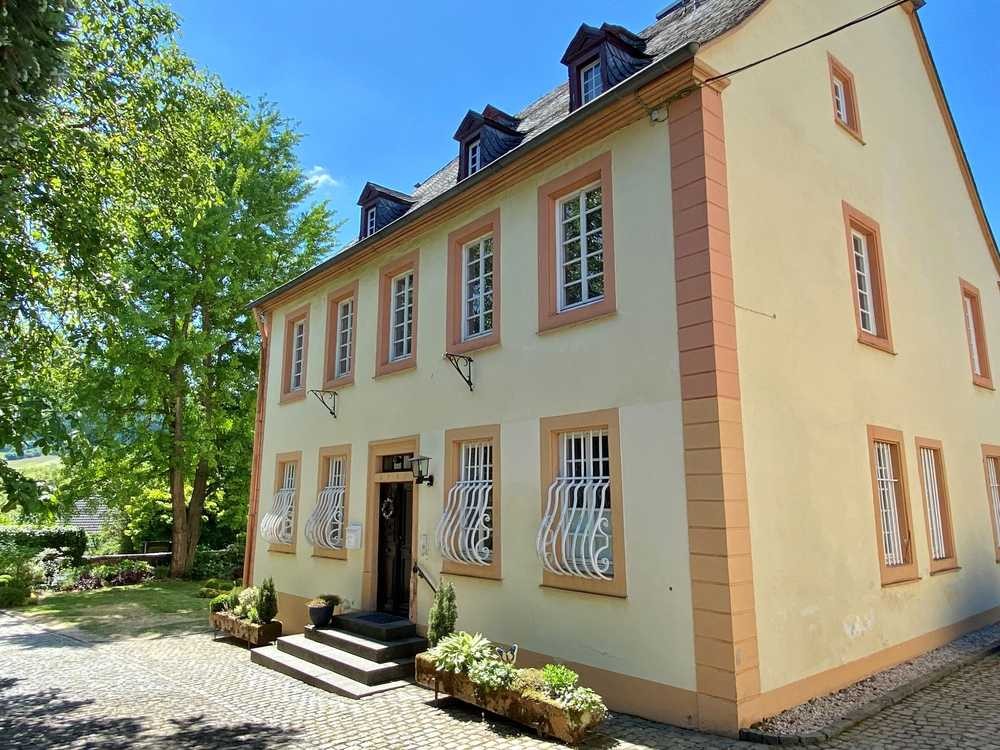 Der freistehende Barockbau aus dem Jahr 1789, der laufend saniert wurde, liegt sehr zentral aber doch ruhig im Ortsteil Osann des Weinorts Osann-Monzel (1.800 Einwohner).