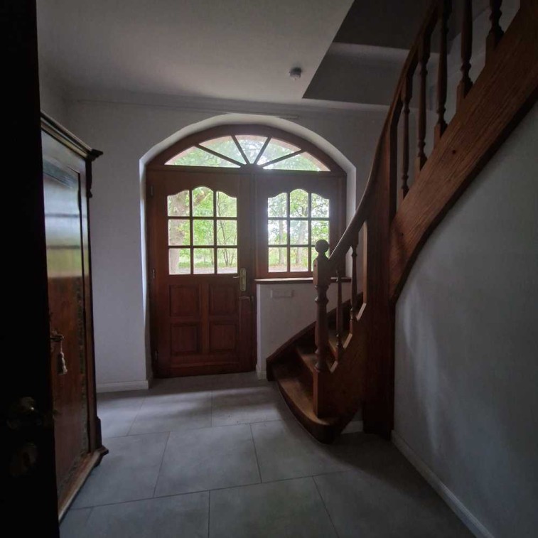 Die Wohnung liegt im Erdgeschoss. Sie hat einen direkten Zugang zu einem kleinen Garten und einer Terrasse. Haus und eigener kleiner Garten sind umgeben von einem alten parkähnlichen weiteren Garten und einem großen Obstgarten.