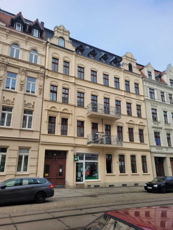 Im gepflegten, denkmalgeschützten Mehrfamilienhaus wohnen Sie in einer hellen und großzügigen 2-Raum-Wohnung im 1. Obergeschoss links.