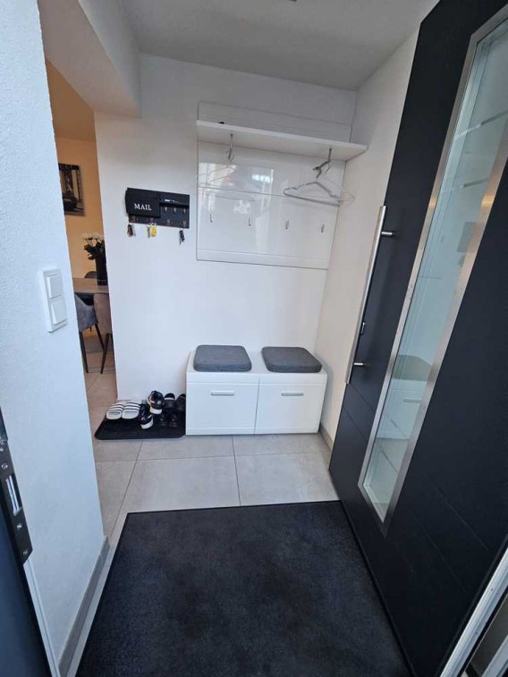 Die Wohnung hat einen eigenen Eingang und alle Räume wurden gefließt und verfügen über eine Fußbodenheizung. Die Fenster sind 3 fach verglast und haben elektr. Rolläden mit integriertem Fliegen/Insektengengitter.
