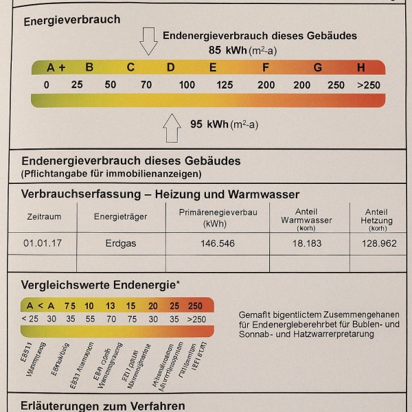 | Endenergiebedarf: | 85,00 kWh/(m²*a) |