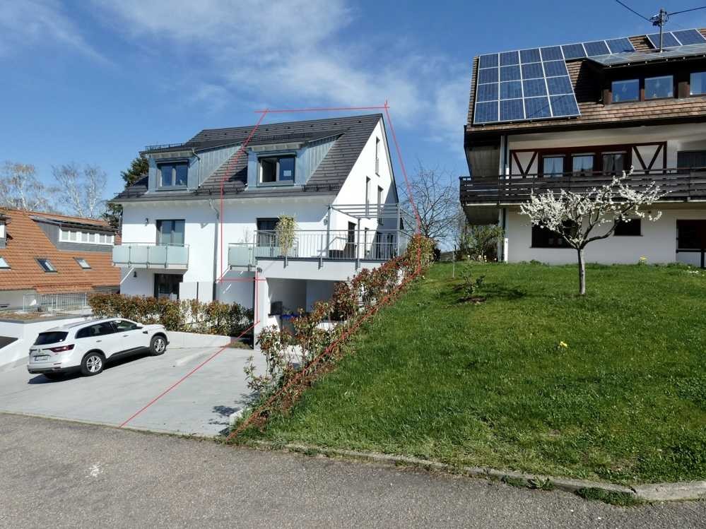 Die DHH ist nach Südost ausgerichtet und bietet einen schönen Ausblick vom Südbalkon am Wohnzimmer. Daneben befindet sich über dem Carport eine große Terrasse mit herrlichem Blick von Südost bis Südwest.