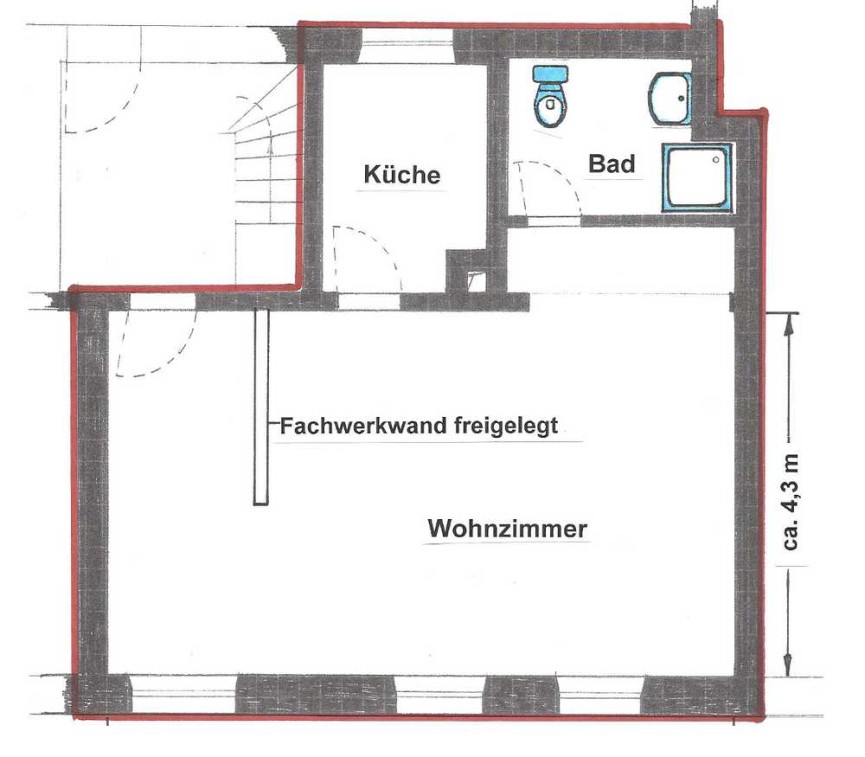 Diese charmante 1-Zimmer Wohnung mit ca. 42 m² Wohnfläche befindet sich im 1. Obergeschoss eines historischen Gebäudes aus dem Jahr 1707 im Herzen von Erlangen Zentrum. Die Wohnung wurde zuletzt 2022 modernisiert und präsentiert sich in einem gepflegten Zustand mit normaler Ausstattungsqualität. Sie verfügt über ein Badezimmer und eine Gasheizung. Die Einbauküche ist bereits vorhanden und erleichtert Ihnen den Einzug. Haustiere sind nach Absprache möglich. Die Wohnung wird ab dem 1.12.2025 verfügbar sein.