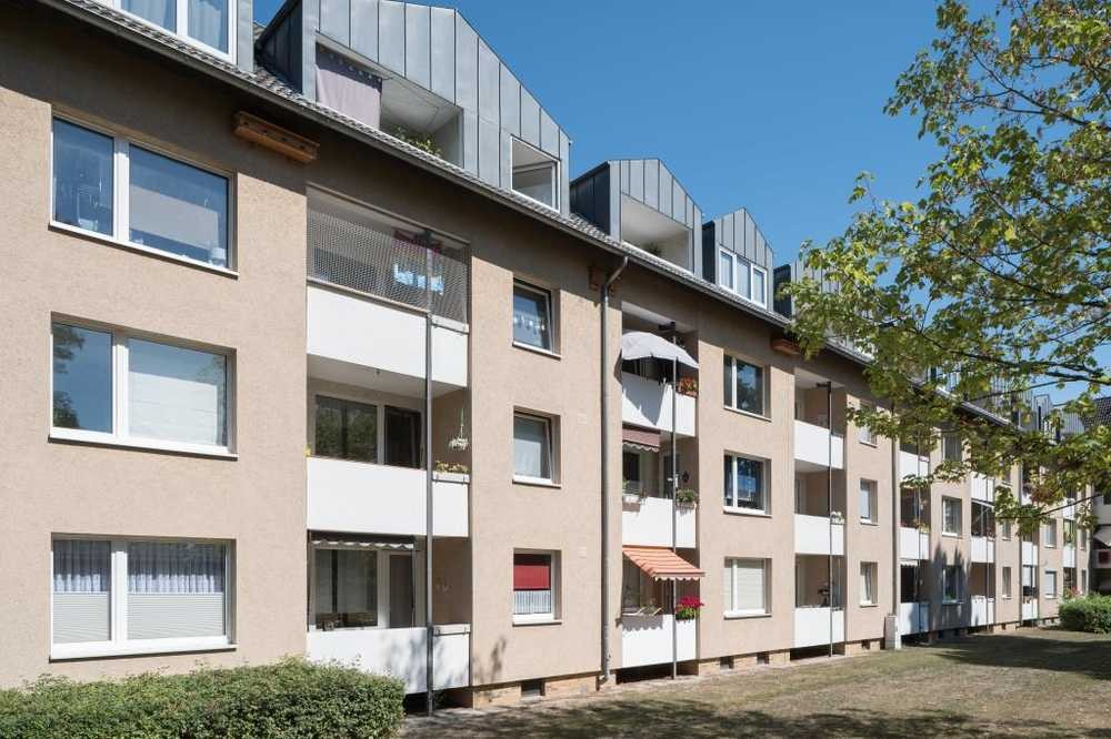 Das Mehrfamilienhaus aus den 50-iger Jahren ist von großzügigen Grünanlagen umgeben.