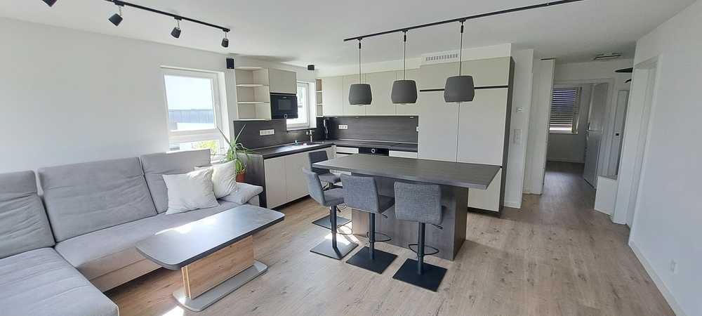 Diese attraktive 3-Zimmer-Wohnung mit ca. 63 m² Wohnfläche befindet sich im 1. Obergeschoss eines gepflegten Mehrfamilienhauses in Niefern-Öschelbronn. Die Wohnung wurde zuletzt 2023 komplett saniert und modernisiert. Sie verfügt über eine sehr gehobene Innenausstattung (Einbauküche, Möbeln, Leuchten und Elektrogeräten). Ein Tiefgaragenstellplatz und ein Außenstellplatz sorgen für bequemes Parken. Von der TG erreicht man sehr bequem den separaten Fahrrad-Abstellraum. Außerdem befindet sich auf dieser Ebene der Waschraum mit Waschmaschine und Trockner.