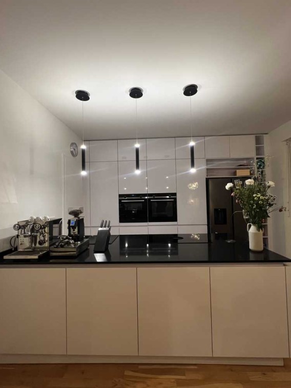 Die hochwertige Nolte-Küche mit BORA-Kochfeld und Siemens-Einbaugeräten fügt sich perfekt in den Raum ein und sollte vorzugsweise mit übernommen werden. Sie wurde passgenau geplant, reicht bis zur Decke und bietet maximalen Stauraum – sowohl optisch als auch funktional ein echtes Highlight.