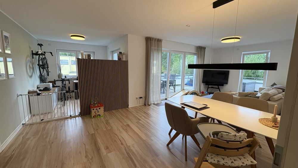 Unsere schöne 3-Zimmer Wohnung ist ab sofort frei. Die Wohnung besticht durch den großen Wohn-Essbereich (den wir zuletzt optisch geteilt hatten und zusätzlich als Büro genutzt haben) und eine große Dachterasse, auf der man bis in die späten Abendstunden die Sonne genießen kann.