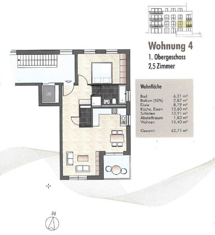 Die Wohnung ist barrierefrei zugänglich. Durch einen Fahrstuhl gelangen Sie bei Bedarf aus der Tiefgarage bzw. dem Erdgeschoss bequem ins erste Stockwerk auf dem sich die Wohnung befindet. Ein aktueller Energieausweis liegt zur Besichtigung vor.