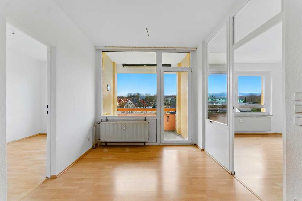 Die Wohnung verfügt über 1 Schlafzimmer, ein Wohnzimmer, ein weiteres Zimmer, das flexibel als Arbeits- oder Kinderzimmer genutzt werden kann, eine Küche, ein Tageslichtbad und einen Balkon. Im großen, hellen Flur kann problemlos ein Esstisch platziert werden.