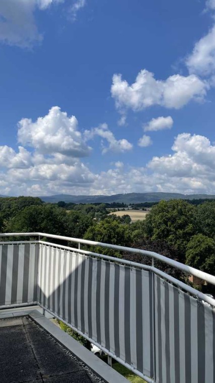 Diese stillvolle großzügige 2-Zimmer Wohnung zeichnet sich durch ein wunderbares Ambiente aus. Die Wohnung ist sehr hell, befindet sich im obersten Stock eines sehr gepflegten Mehrfamilienhauses (mit Aufzug) und liegt im Herzen von Friedrichsdorf. Der traumhafte Blick in den Taunus ist unverbaubar und der über 11 qm große Balkon ist mit einer Markise 500x300 cm ausgestattet.