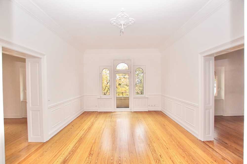 Die 166 Quadratmeter große Wohnung befindet sich im 2. Obergeschoss der denkmalgeschützen Altbauvilla in der Wiesbadener City-Ost. Über das historische Treppenhaus gelangen Sie in die im obersten Stockwerk liegende Wohnung.