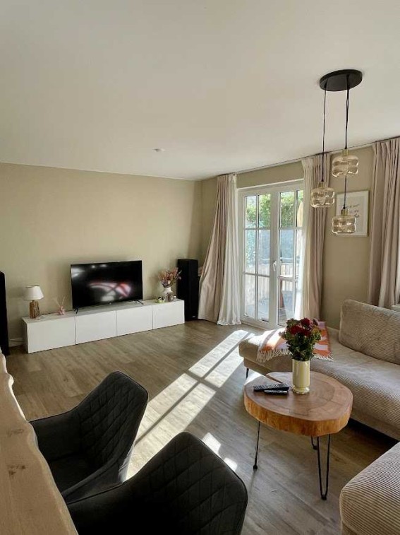 Diese neuwertige Wohnung, die im ersten OG liegt, besticht durch eine gehobene Innenausstattung und kann ab sofort bezogen werden. Zu der Wohnung zählen ein Schlafzimmer, ein Büro oder Kinderzimmer sowie ein großer offener Ess- und Wohnbereich.