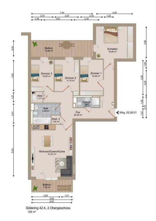 Die lichtdurchflutete Wohnung bietet einen großen Wohnbereich mit integrierter Küchenzeile, von dem Sie Zugang auf den großzügigen Balkon haben.