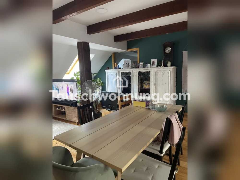 Ich biete eine schöne, großzügig geschnittene Dachgeschoss Wohnung (120qm) mit vier Zimmern und Garten in Zehlendorf (OHV), 1500 Euro warm. Tausch ab sofort.