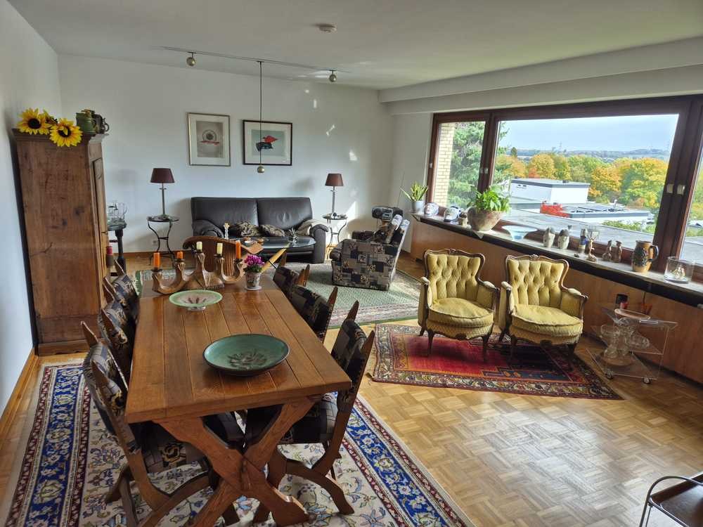 Von der geräumigen Diele mit Zugang zum Gäste-WC und separater Garderobe, betritt man den sehr großen Wohn- und Essbereich. Der durch die großen Fensterflächen an der kompletten Längsseite einen wunderbaren Blick in den Garten und in die Ferne bietet.