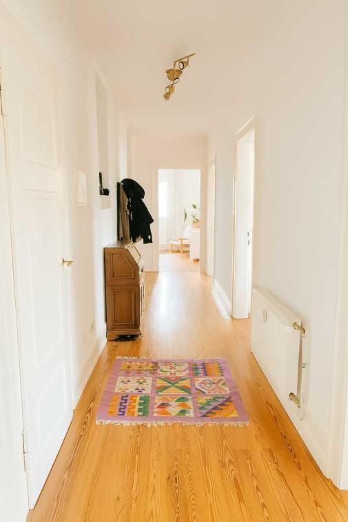 Der schöne Echtholzdielenboden, hohe Decken und großzügige Fenster verleihen den Räumen eine warme und einladende Atmosphäre.