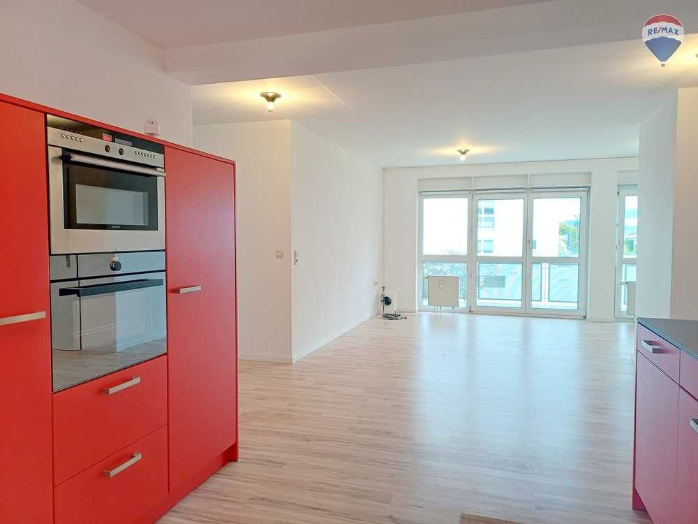 Die Wohnung umfasst drei gut geschnittene Zimmer, darunter zwei Schlafzimmer, ein offenes Wohnzimmer, eine großzügige Wohnküche, ein modernes Bad, ein Gäste-WC, zwei Balkone und zwei Abstellkammern.