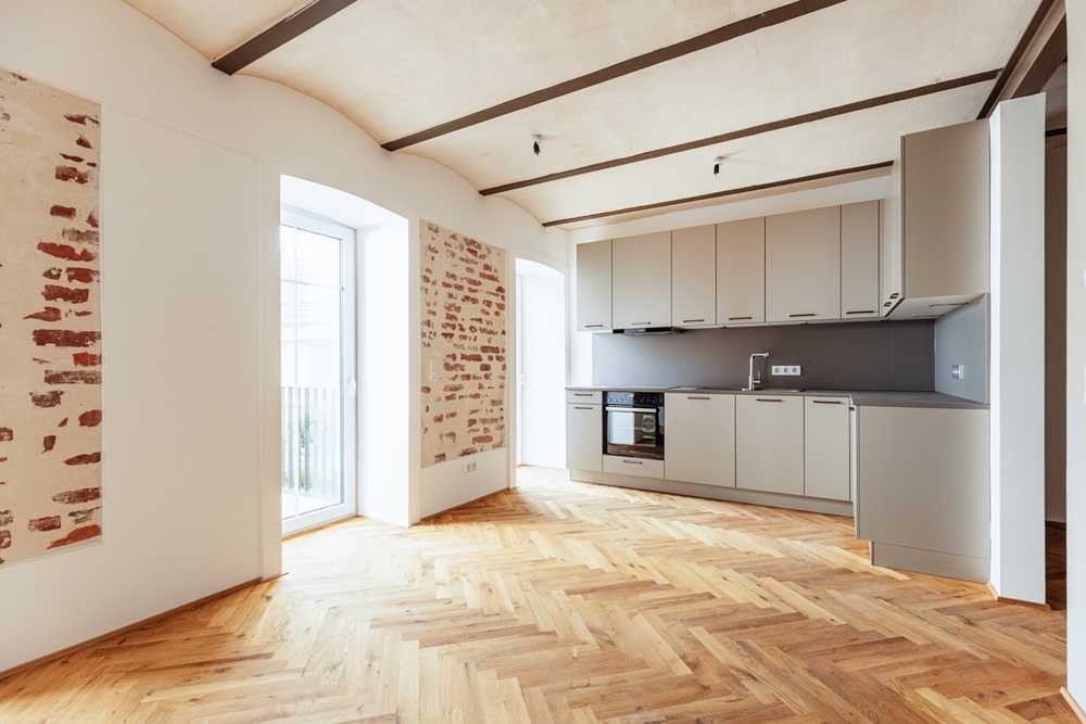 Die moderne, stilsichere Einbauküche und die hochwertige Badausstattung fügen sich in das Gesamtkonzept ein – zeitlos, edel und funktional. Jede Wohnung in diesem Ensemble besitzt ihren eigenen Charakter, geprägt von außergewöhnlicher Architektur und liebevoller Gestaltung.