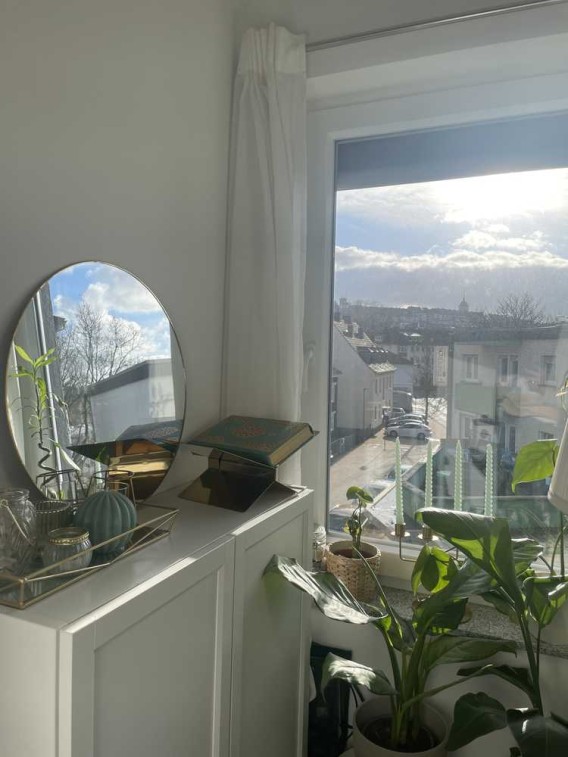 Die Wohnung verfügt über Dachschrägen, 4 Fenster, Rollläden, Fußbodenheizung. Eine Schlafcouch mit Wechsel- und waschbaren Bezügen) im Wert von 450€ sollte übernommen werden.
