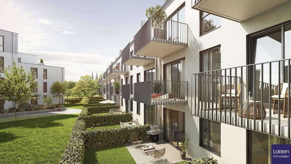 Im geschützten Innenhof sorgen neu gestaltete, großzügige Freiflächen und Außenanlagen für Groß und Klein für einen hohen Freizeitwert.
