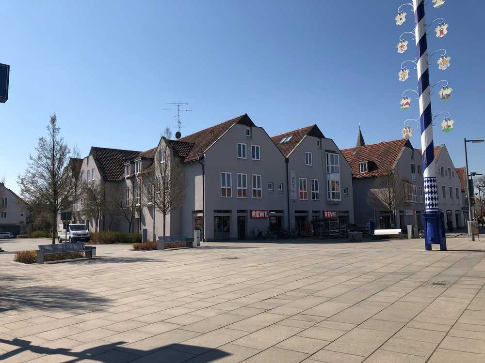 Absolut zentrumsnah liegt sie direkt am Maibaumplatz, von wo aus alles fußläufig sehr gut erreicht werden kann. Der REWE Markt, Metzger, Bäckereien, Apotheke, Bank, Optiker, etc. und der U-Bahn-Zugang sind genau am Maibaumplatz angesiedelt.