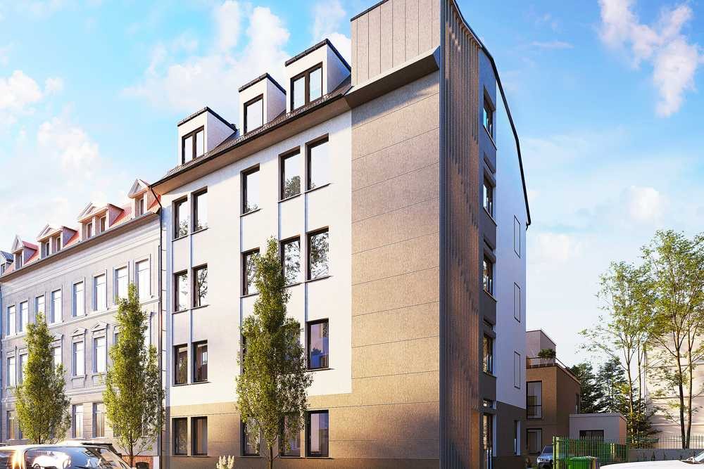 In einer ruhigen Seitenstraße entsteht ein moderner Neubau im KfW-40-Standard mit insgesamt 13 Wohneinheiten (10 im Vorderhaus und 3 im Hinterhaus). Der Bezug ist ab Mitte November 2025 möglich.
