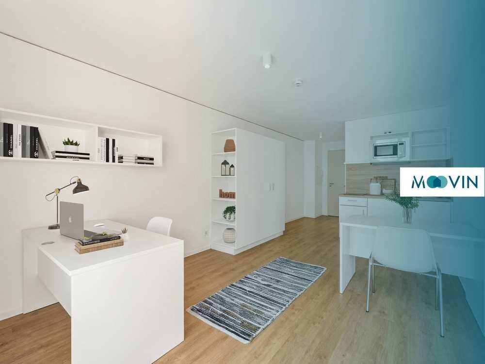 Deine neue Wohnung hat bereits alles, was du brauchst. Denn die voll möblierte Ausstattung macht dieses Mikro-Apartment direkt bezugsbereit. Die Küche ist mit einem Kühlschrank sowie Cerankochfeld ausgestattet. Vor dem Küchenbereich gibt es zudem einen gemütlichen Essbereich inkl. Tisch und Stühle und bietet somit die ideale Fläche für ausgiebige Kochabende mit Freunden oder der Familie.