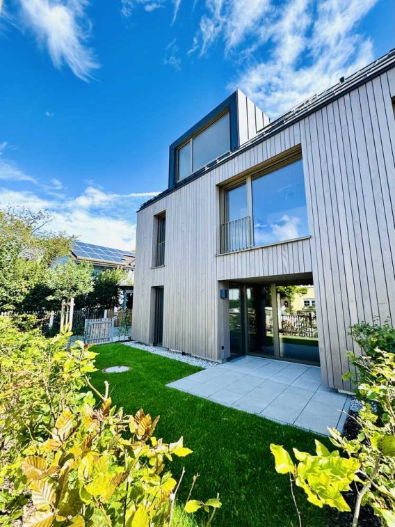 Die Neubau-Villenhälften in München Allach-Untermenzing überzeugen durch ihre ökologische Holzbauweise und ein fortschrittliches Energiekonzept.