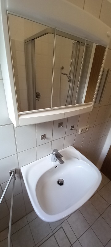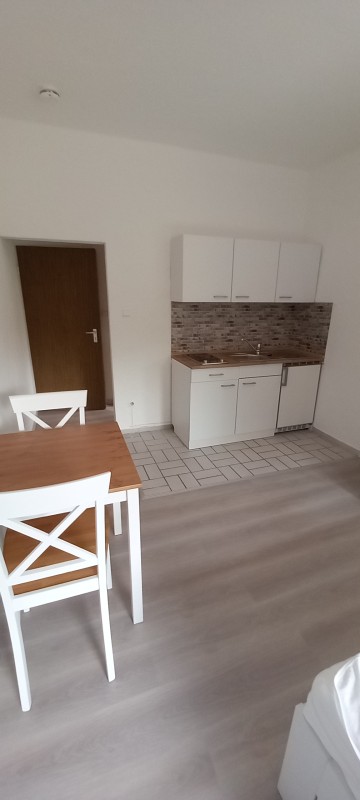 Das Einzimmer-Appartement ist ausgestattet für 1 Person, mit: Bett, Nachttisch, Kleiderschrank, Kommode, TV, Tisch und 2 Stühlen, 1 Küchenblock mit 2 Kochfeldern, 1 Spülbecken, sowie ein Kühlschrank und Oberschränke für Geschirr. Auf dem Balkon gibt es ebenfall Tisch und Stuhl. Das Badezimmer verfügt über eine geräumige Dusche, Waschbecken, Spiegelschrank und WC. Parkplatz inklusive.