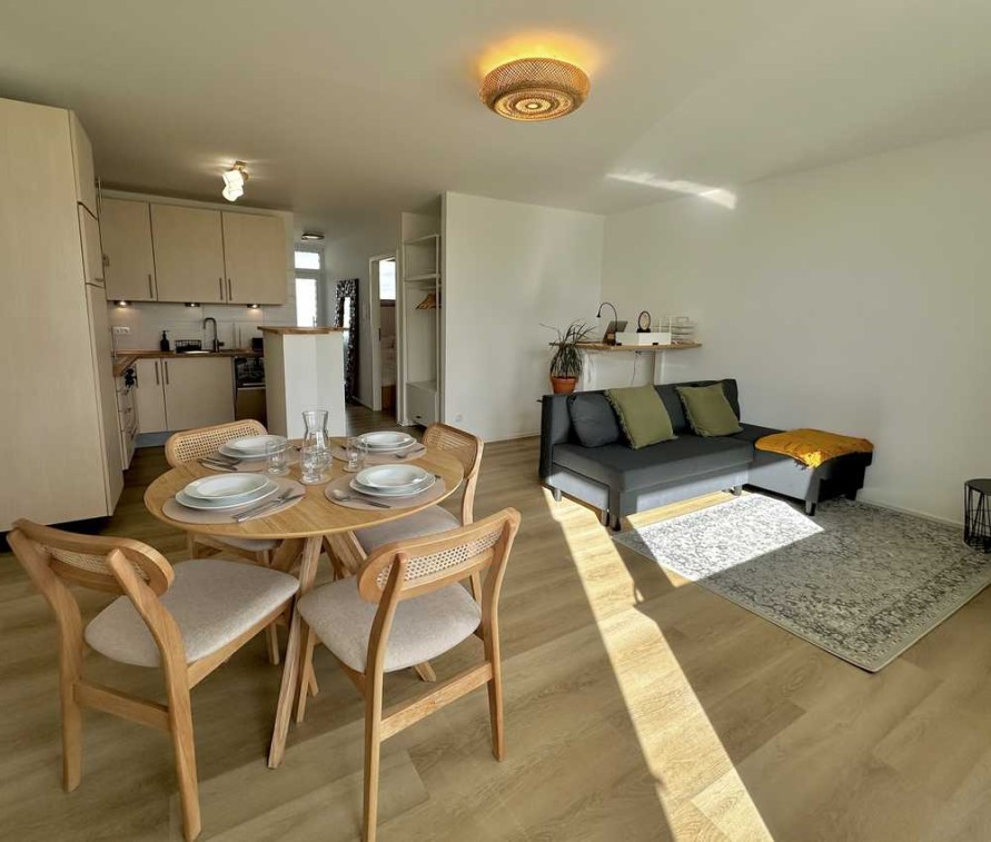 Diese hochwertig renovierte Wohnung überzeugt durch ihre moderne Ausstattung. Der Arbeitsplatz verfügt über einen elektrisch höhenverstellbaren Schreibtisch sowie schnelles WLAN (250 Mbit/s Download, 50 Mbit/s Upload) – ideal für produktives Arbeiten im Homeoffice. Ein Smart-TV sorgt für Unterhaltung in der Freizeit. Die moderne Einbauküche ist vollständig ausgestattet und lässt keine Wünsche offen: Toaster, Kaffeemaschine, Sprudelmaschine, Wasserkocher, Geschirrspüler sowie sämtliche Küchenutensilien stehen zur Verfügung. Im Badezimmer befindet sich eine praktische 2-in-1 Wasch- und Trocknungsmaschine. Der Balkon bietet einen angenehmen, ruhigen Ausblick. Das Schlafzimmer ist mit einem komfortablen Bett (160x200 cm) sowie Nachttischlampen mit USB-Anschluss zum Laden von Geräten ausgestattet. Im Wohnzimmer befindet sich zusätzlich ein Schlafsofa (135x196 cm), sodass die Wohnung bis zu vier Personen Platz bietet. Die Lage ist hervorragend angebunden: In nur 5 Minuten erreicht man die Autobahn, in 15 Minuten die Köln Messe (mit dem Auto). Der Bahnhof Leverkusen-Manfort ist fußläufig in ca. 7 Minuten erreichbar, ein Supermarkt in nur 4 Minuten entfernt.