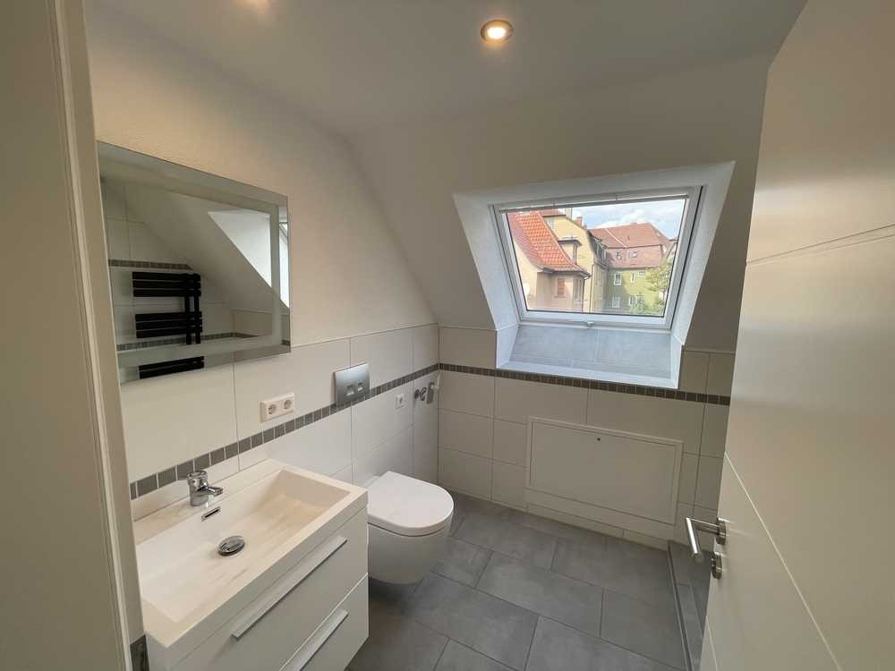 Die Wohnung befindet sich im Dachgeschoss eines Drei-Parteienhauses mit direktem Blick auf den Wangener Marktplatz. Die Fläche der Wohnung wirkt aufgrund der Schrägen deutlich geräumiger als die angegebene DIN-Fläche