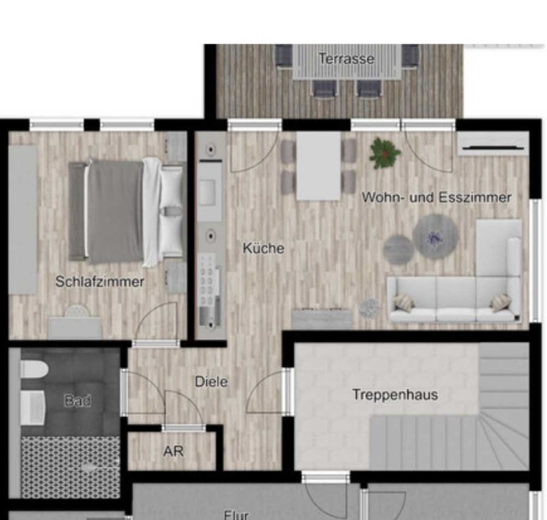 Bei einer Wohnfläche von ca 57qm steht Ihnen ein großzügiger Wohn-und Kochbereich zur Verfügung sowie ein schönes Schlafzimmer. Des Weiteren gibt es ein Badezimmer mit großer, ebenerdiger Dusche sowie