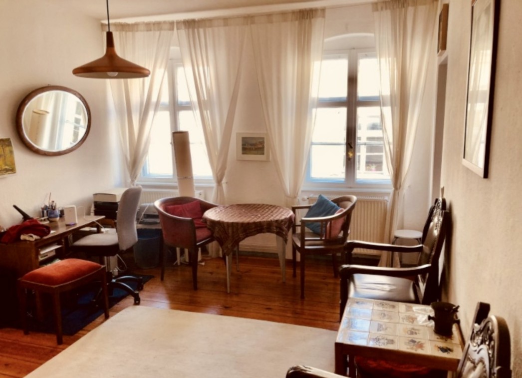 This central and quiet apartment is the perfect place to explore the city. Set in a beautiful and trendy neighborhood right in the center with galleries, theaters, cafes and old buildings, the 4th floor walk up is furnished, has two rooms and is very quiet, in an old building with wooden floors and a queen size bed, washer, wifi, small kitchen and bathroom. Perfect for a kind, non-smoking single person. Available from November until February with the option to extend. There is also a couch and a dishwasher available if needed. Perfect for someone new to the city who needs a good, quiet and central base. The time frame is negotiable. Super central in one of the coolest areas with the trains S1, S2 and S25 Oranienburger Straße is fast one minute walk from the apartment . There is also a bus nearby and various Trams. The Location is right in the very nice, very popular and walkable area around Auguststrasse, with a various cafes and bakeries as well a great frozen yoghurt close by. There are cool shops and sights just a few minutes walk.