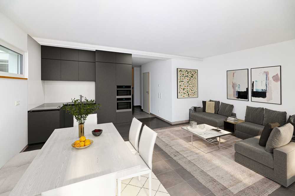 Im Erdgeschoss erwartet Sie ein offener Wohn- und Essbereich mit direktem Zugang zum sonnigen Außenbereich in Süd-Ausrichtung. Der kompakte Garten schafft Raum für entspannte Stunden im Freien – pflegeleicht und dennoch mit viel Aufenthaltsqualität. Die moderne und nachhaltige Bauweise in Massiv-Holz-Hybridkonstruktion sorgt für ein angenehmes Wohnklima und erfüllt die Anforderungen an zeitgemäße Energieeffizienz (GEG 2020). Eine zentrale Luft-Wasser-Wärmepumpe, Fußbodenheizung sowie eine kontrollierte Wohnraumlüftung mit Wärmerückgewinnung gehören zur hochwertigen technischen Ausstattung.