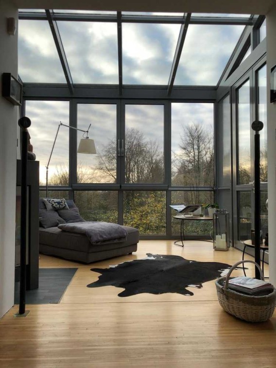 Die gesamte Wohnung, bis auf die Bäder, ist mit einem hochwertigen Echtholzparkett ausgestattet. Der perfekt isolierte Wintergarten ist als normaler Wohnraum integriert und mit einem modernen Design-Kaminofen von Hase ausgestattet für gemütliche Winterabende.