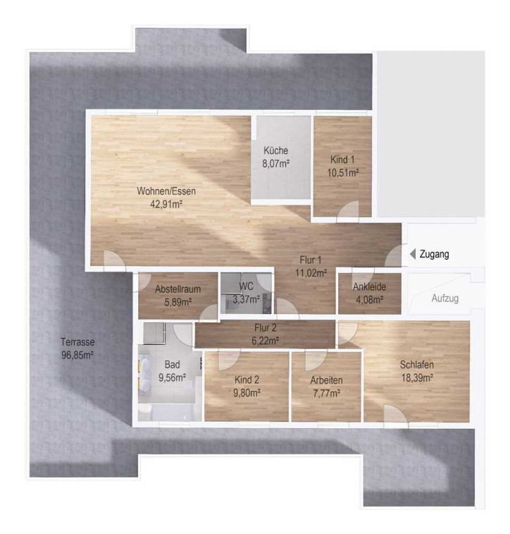 - ca. 97m² große, private Dachterrasse mit Weitblick