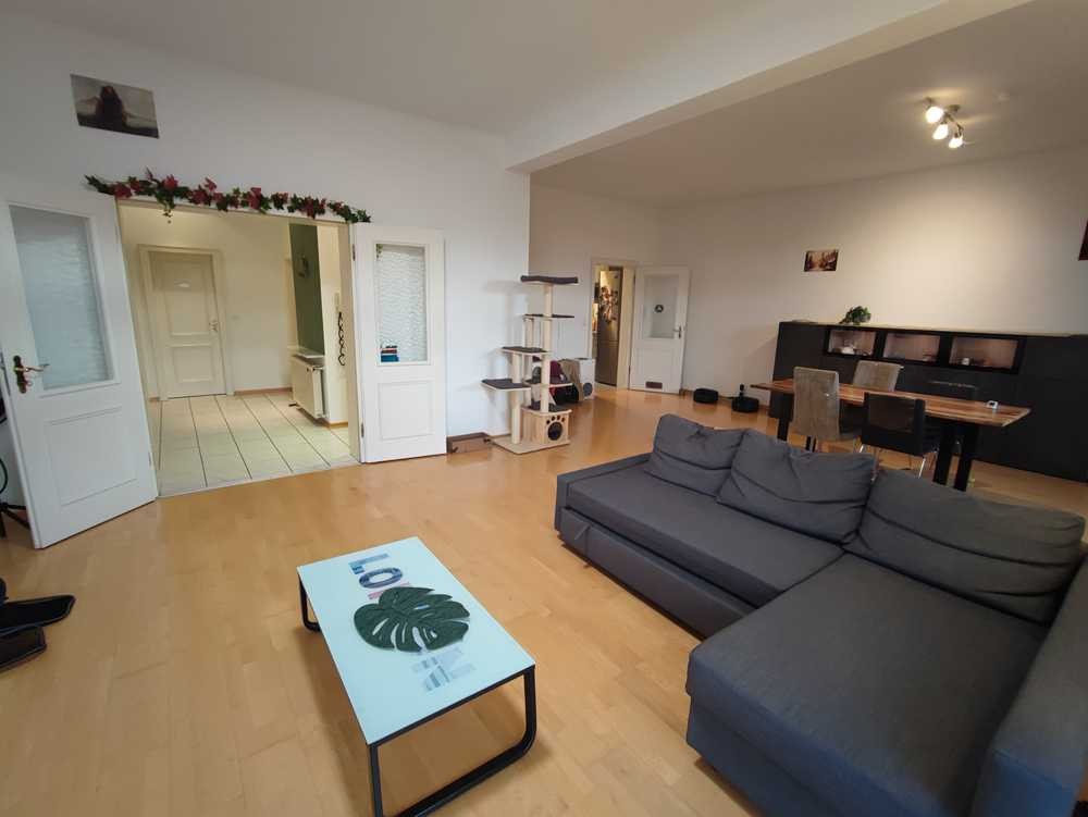 Die Wohnung befindet sich im 3. OG eines gepflegten Altbaus (ohne Aufzug) und bietet auf ca. 103 m² viel Platz und Licht. Besonders das große Wohnzimmer mit ca. 40 m² und Flügeltüren ist ein echtes Highlight – perfekt zum Entspannen, Arbeiten oder für gemütliche Abende mit Freunden.