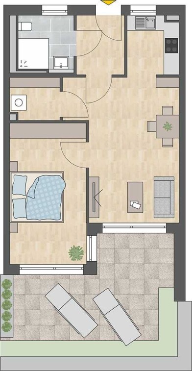 Wir vermieten eine 2-Zimmer-Wohnung mit Dachterrasse im 1. Obergeschoss. In der Kaltmiete von 1.500,00 Euro ist die Miete der Einbauküche von 50,00 Euro bereits enthalten. Hinzu kommt noch ein Tiefgaragenstellplatz für 60,00 Euro.