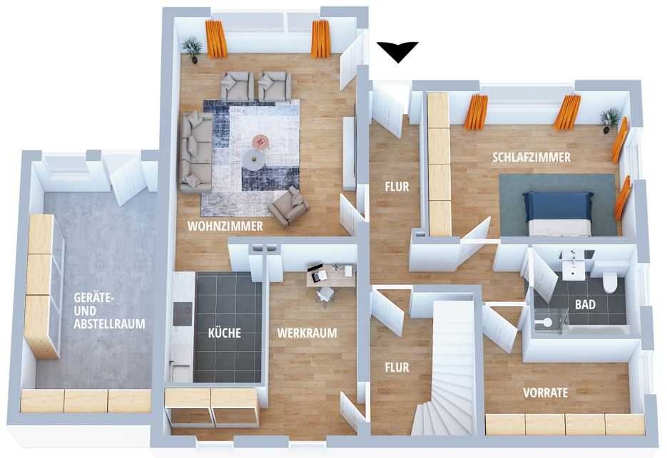 Diese helle frisch renovierte 2 Zimmer-Einliegerwohnung mit ca. 77 m² Wohnfläche befindet sich in Weibern.